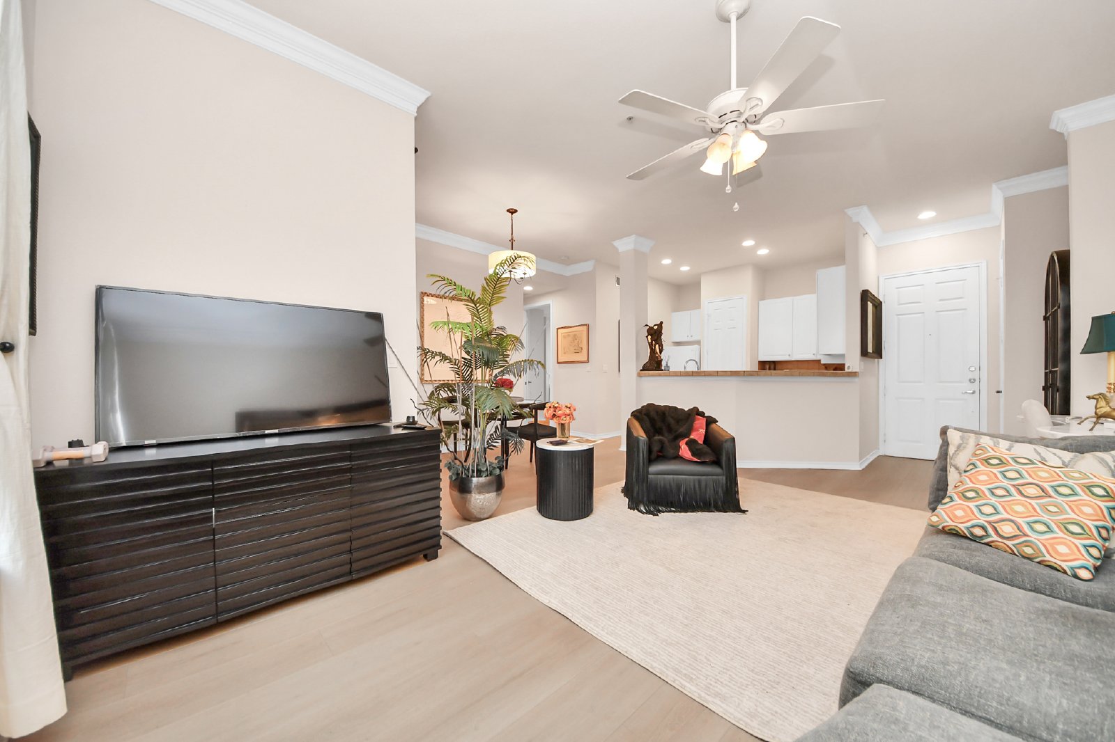 Welcome to 2400 McCue Rd #113 — a fully furnished, beautifully maintained first-floor condo ideally located just steps from the Galleria. Situated right off Westheimer and Loop 610, this residence offers unbeatable convenience to world-class shopping, dining, entertainment, and nearby parks. This turnkey 1-bedroom, 1-bathroom unit features 761 sq. ft. of thoughtfully designed living space. The open-concept layout includes a comfortable furnished living area, a well-appointed kitchen that flows into the dining space, and a spacious primary bedroom with an en-suite bathroom and ample storage. All furnishings are included, making your move effortless. Perfect for corporate housing, medical professionals, or anyone seeking a ready-to-occupy furnished rental in the heart of Houston. Residents enjoy access to premium community amenities, including a fitness center, concierge services, 24-hour controlled access, private security, and a business center. This beautifully furnished is ready now!